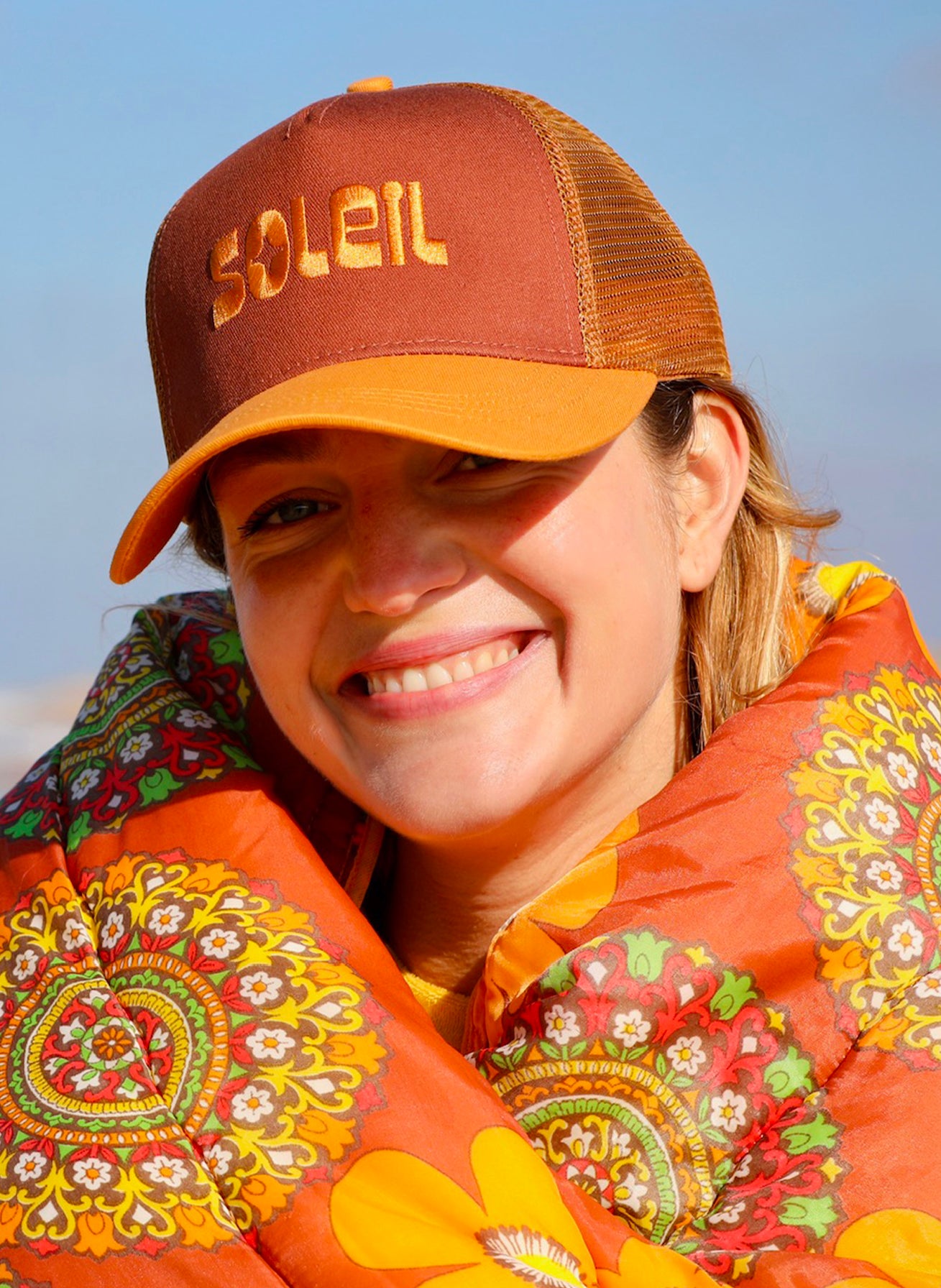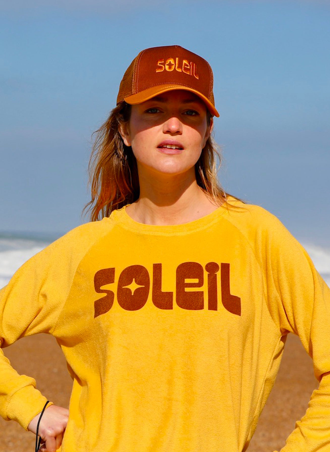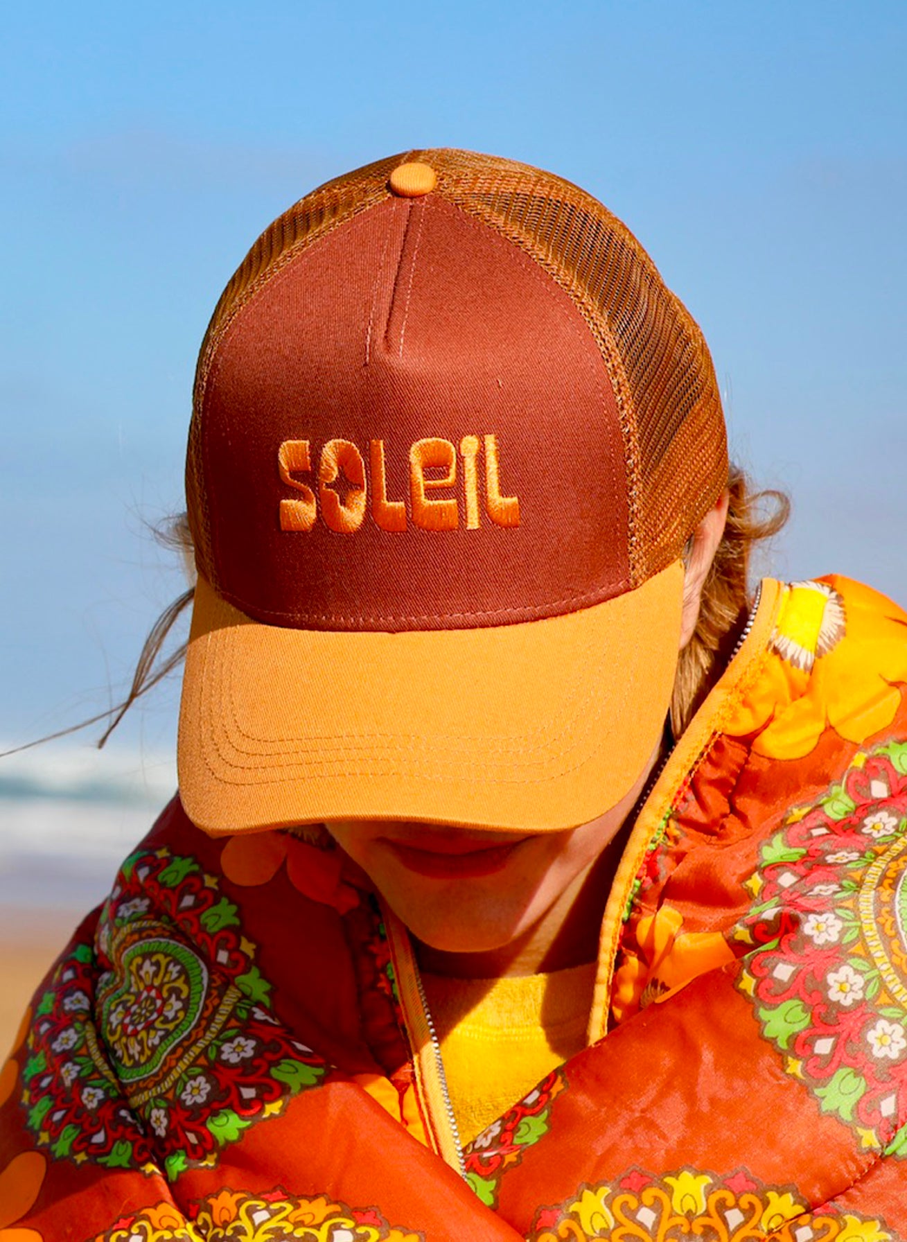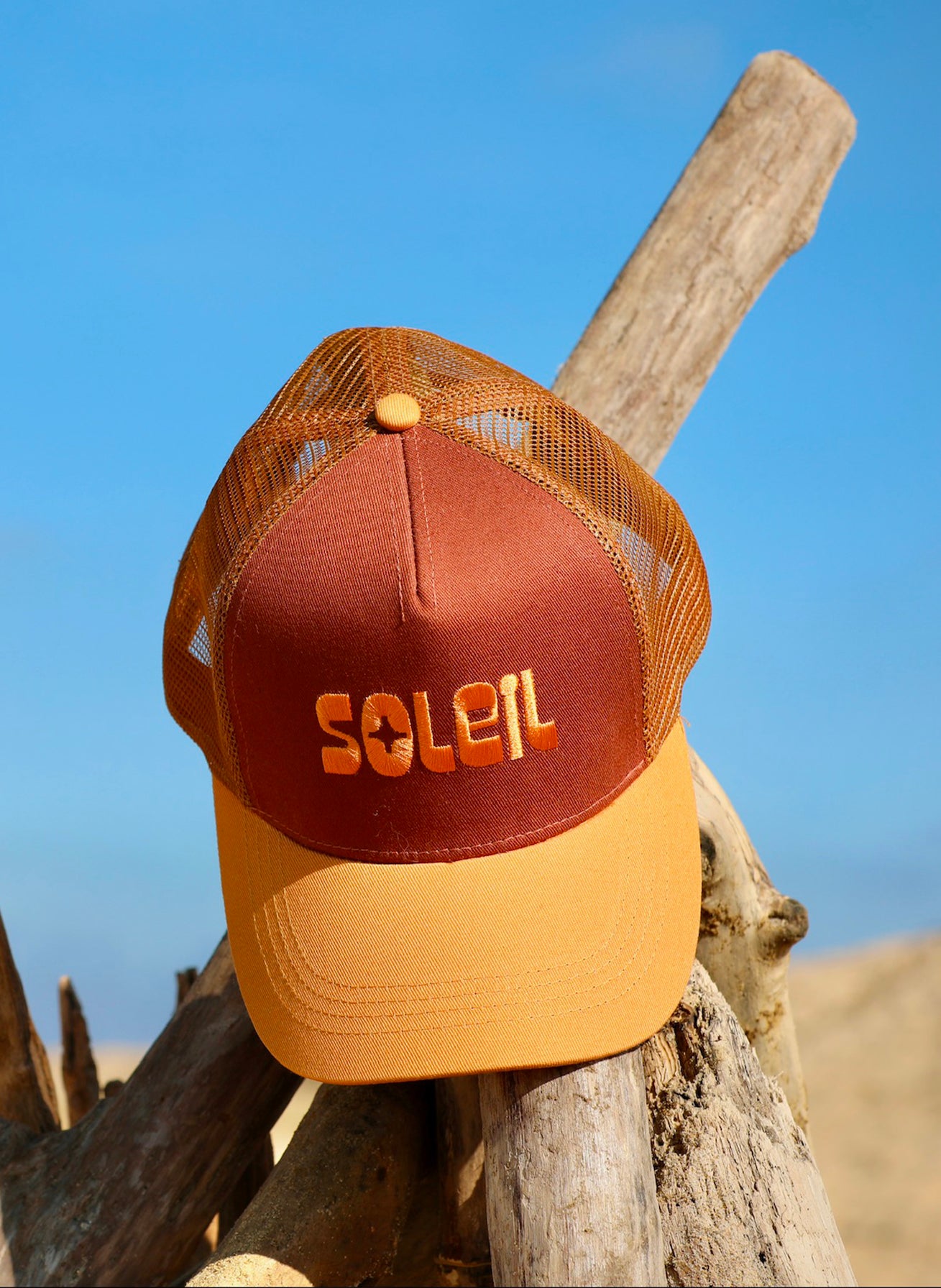 Elle est en 100% coton et le filet arrière en nylon. Broderie "SOLEIL" placée sur le devant.